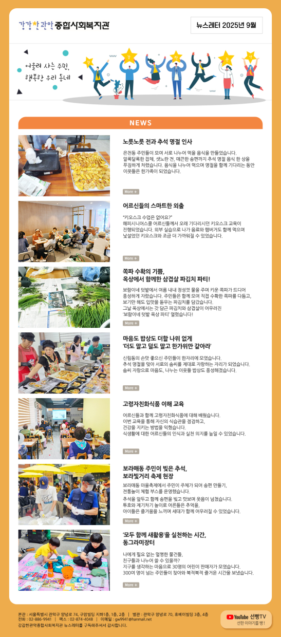 2025년 9월 강감찬관악종합사회복지관 뉴스레터 강감찬관악종합사회복지관 0 1 10.20 18:20 ▼ 뉴스레터 바로가기 클릭 ▼https://gaw.or.kr/newsletter/33239